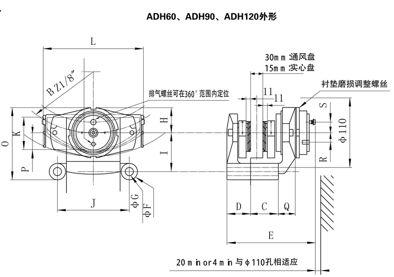 ADH60制動(dòng)力=(p-0.25)x1560 ADH90制動(dòng)力 =(p-0.25)x3000 ADH120制動(dòng)力= (p-0.25)x4710 |