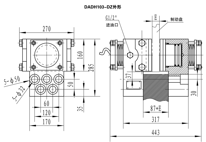 制動(dòng)力=1350 x壓力(壓力≦200bar)