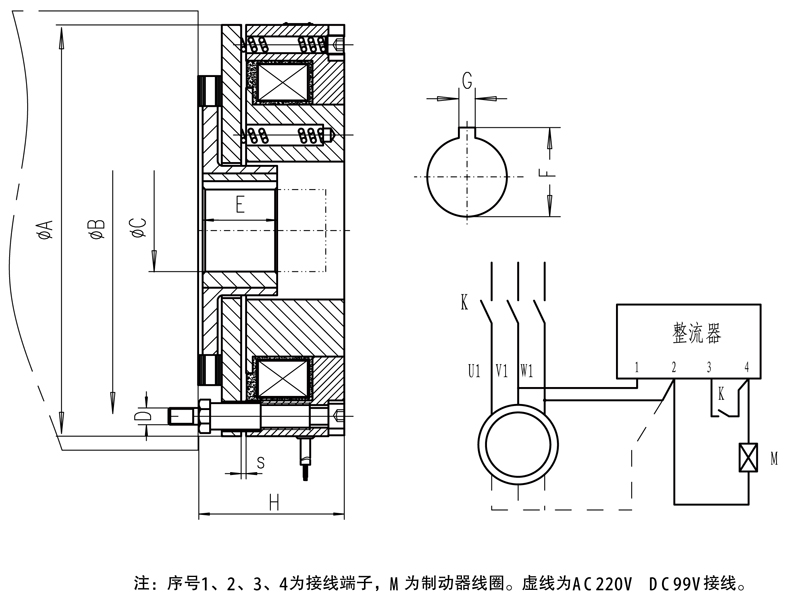 系列制動(dòng)器線圈絕緣等級(jí):B級(jí)。