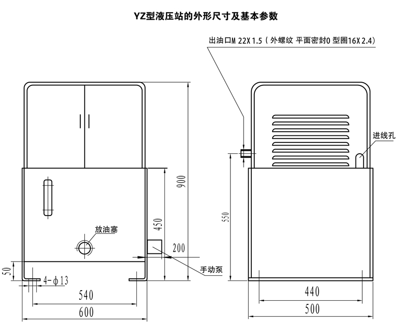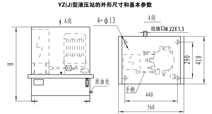 注: ① 一臺YZ型液壓站可控制一個或多個液壓輪邊制動器或頂軌器,但開闡時間不同。 ② 具體型號,結(jié)構(gòu)外形尺寸保留更改的權(quán)利。